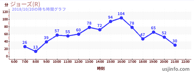 • ジョーズ(R)$B$N(B2018年10月20日の待ち時間