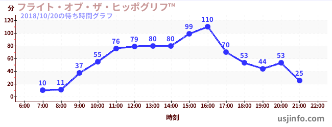 • フライト・オブ・ザ・ヒッポグリフ™$B$N(B2018年10月20日の待ち時間