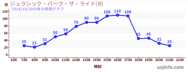 • ジュラシック・パーク・ザ・ライド(R)$B$N(B2018年10月20日の待ち時間
