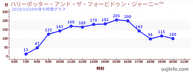 • ハリーポッター・アンド・ザ・フォービドゥン・ジャーニー™$B$N(B2018年10月20日の待ち時間