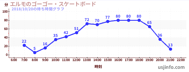 • エルモのゴーゴー・スケートボード$B$N(B2018年10月20日の待ち時間
