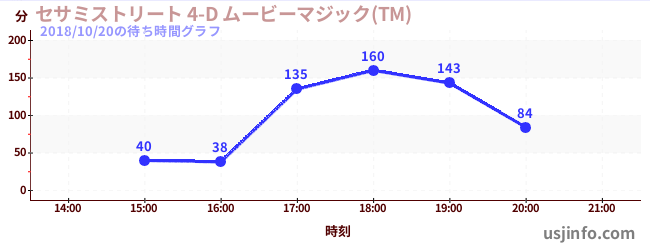• セサミストリート 4-D ムービーマジック(TM)$B$N(B2018年10月20日の待ち時間