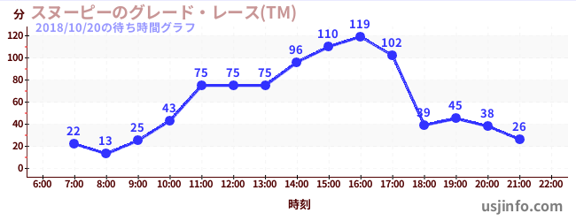 • スヌーピーのグレード・レース(TM)$B$N(B2018年10月20日の待ち時間