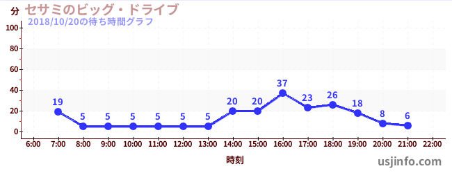 • セサミのビッグ・ドライブ$B$N(B2018年10月20日の待ち時間