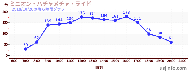 • ミニオン・ハチャメチャ・ライド$B$N(B2018年10月20日の待ち時間