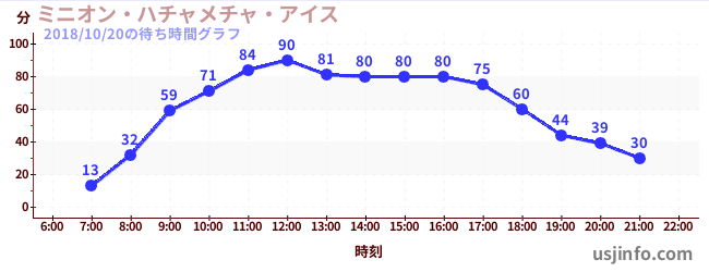 • ミニオン・ハチャメチャ・アイス$B$N(B2018年10月20日の待ち時間