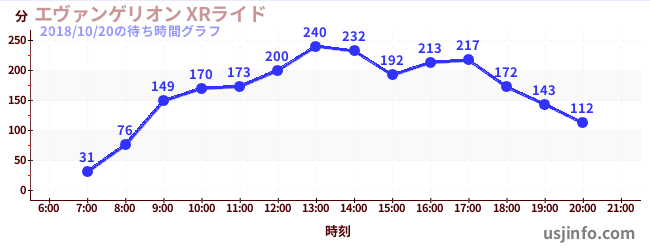 • エヴァンゲリオン XRライド$B$N(B2018年10月20日の待ち時間