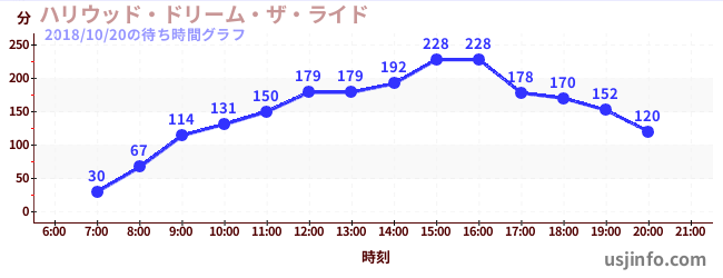 • ハリウッド・ドリーム・ザ・ライド$B$N(B2018年10月20日の待ち時間