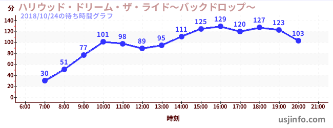 • ハリウッド・ドリーム・ザ・ライド〜バックドロップ〜$B$N(B2018年10月24日の待ち時間