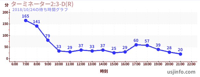 • ターミネーター2:3-D(R)$B$N(B2018年10月24日の待ち時間