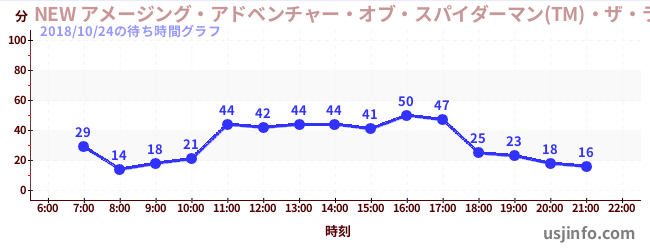 • NEW アメージング・アドベンチャー・オブ・スパイダーマン(TM)・ザ・ライド 4K3D$B$N(B2018年10月24日の待ち時間