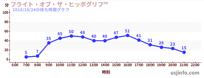 • フライト・オブ・ザ・ヒッポグリフ™$B$N(B2018年10月24日の待ち時間