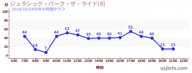 • ジュラシック・パーク・ザ・ライド(R)$B$N(B2018年10月24日の待ち時間