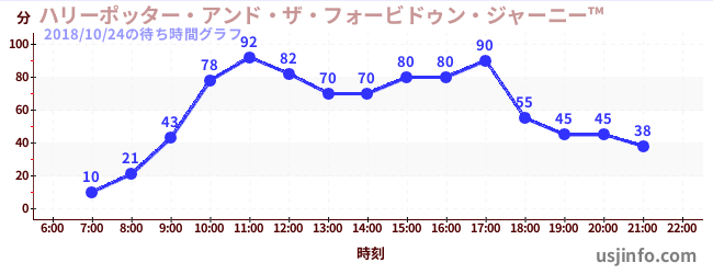 • ハリーポッター・アンド・ザ・フォービドゥン・ジャーニー™$B$N(B2018年10月24日の待ち時間