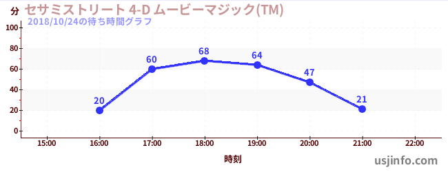 • セサミストリート 4-D ムービーマジック(TM)$B$N(B2018年10月24日の待ち時間