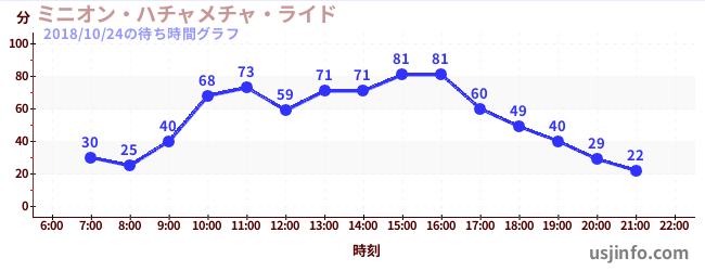 • ミニオン・ハチャメチャ・ライド$B$N(B2018年10月24日の待ち時間