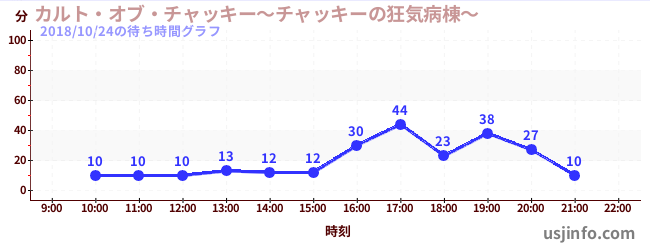 • カルト・オブ・チャッキー~チャッキーの狂気病棟~$B$N(B2018年10月24日の待ち時間