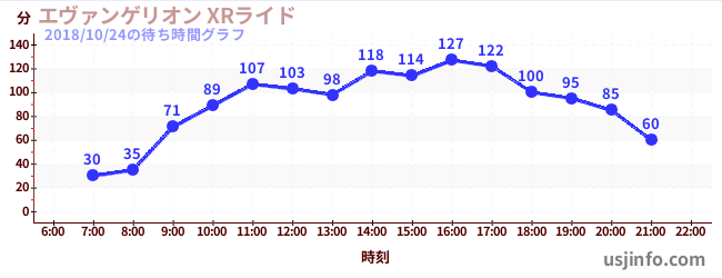 • エヴァンゲリオン XRライド$B$N(B2018年10月24日の待ち時間