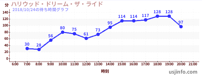 • ハリウッド・ドリーム・ザ・ライド$B$N(B2018年10月24日の待ち時間
