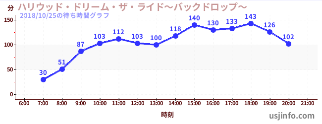• ハリウッド・ドリーム・ザ・ライド〜バックドロップ〜$B$N(B2018年10月25日の待ち時間
