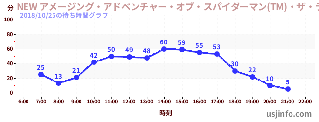 • NEW アメージング・アドベンチャー・オブ・スパイダーマン(TM)・ザ・ライド 4K3D$B$N(B2018年10月25日の待ち時間