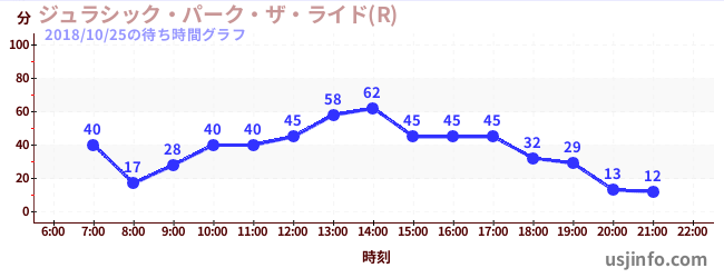 • ジュラシック・パーク・ザ・ライド(R)$B$N(B2018年10月25日の待ち時間