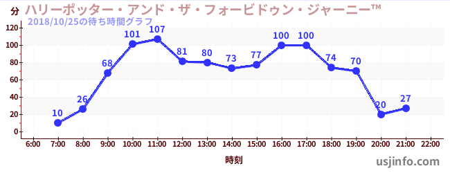• ハリーポッター・アンド・ザ・フォービドゥン・ジャーニー™$B$N(B2018年10月25日の待ち時間
