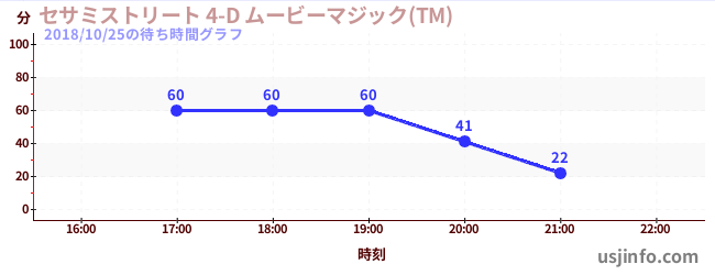 • セサミストリート 4-D ムービーマジック(TM)$B$N(B2018年10月25日の待ち時間
