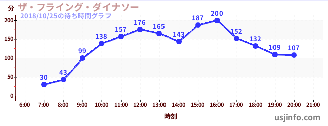 • ザ・フライング・ダイナソー$B$N(B2018年10月25日の待ち時間