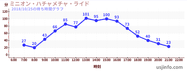 • ミニオン・ハチャメチャ・ライド$B$N(B2018年10月25日の待ち時間