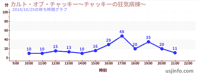 • カルト・オブ・チャッキー~チャッキーの狂気病棟~$B$N(B2018年10月25日の待ち時間