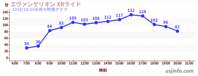 • エヴァンゲリオン XRライド$B$N(B2018年10月25日の待ち時間