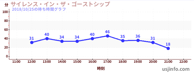 • サイレンス・イン・ザ・ゴーストシップ$B$N(B2018年10月25日の待ち時間