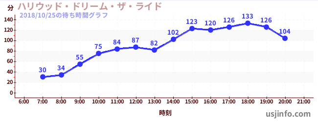 • ハリウッド・ドリーム・ザ・ライド$B$N(B2018年10月25日の待ち時間