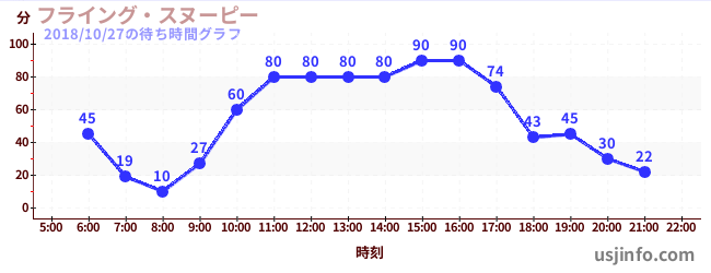 • フライング・スヌーピー$B$N(B2018年10月27日の待ち時間