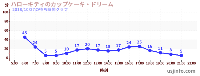 • ハローキティのカップケーキ・ドリーム$B$N(B2018年10月27日の待ち時間