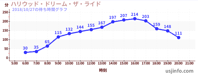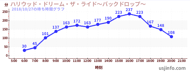 • ハリウッド・ドリーム・ザ・ライド$B$N(B2018年10月27日の待ち時間