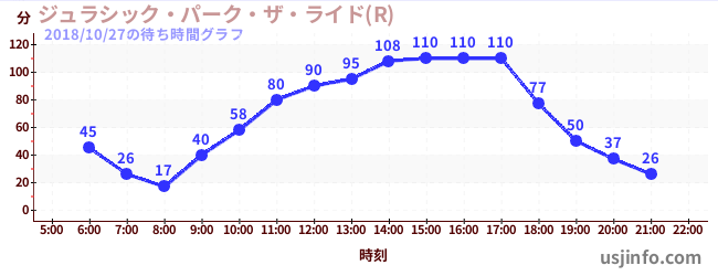 • ジュラシック・パーク・ザ・ライド(R)$B$N(B2018年10月27日の待ち時間