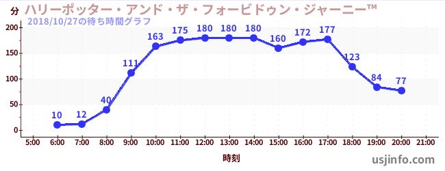 • ハリーポッター・アンド・ザ・フォービドゥン・ジャーニー™$B$N(B2018年10月27日の待ち時間