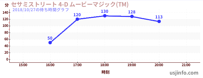 • セサミストリート 4-D ムービーマジック(TM)$B$N(B2018年10月27日の待ち時間