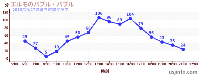 • エルモのバブル・バブル$B$N(B2018年10月27日の待ち時間