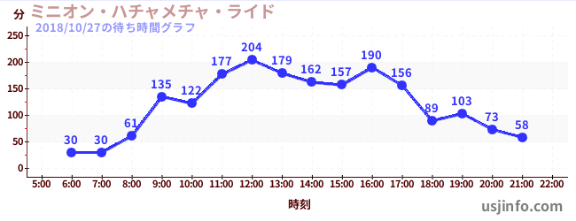 • ミニオン・ハチャメチャ・ライド$B$N(B2018年10月27日の待ち時間