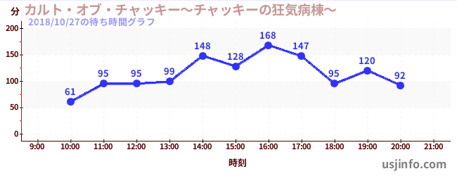 • カルト・オブ・チャッキー~チャッキーの狂気病棟~$B$N(B2018年10月27日の待ち時間