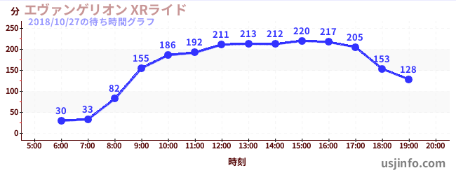 • エヴァンゲリオン XRライド$B$N(B2018年10月27日の待ち時間