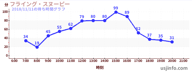 • フライング・スヌーピー$B$N(B2018年11月11日の待ち時間