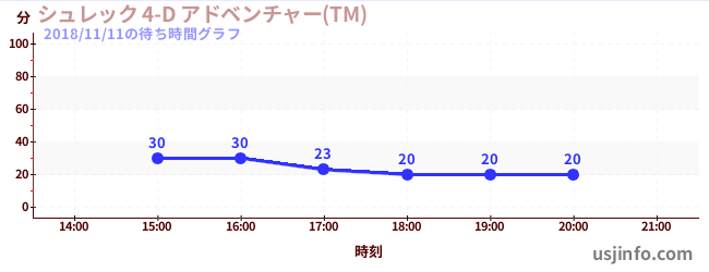 • シュレック 4-D アドベンチャー(TM)$B$N(B2018年11月11日の待ち時間