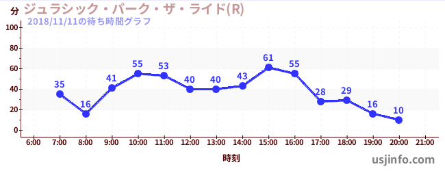 • ジュラシック・パーク・ザ・ライド(R)$B$N(B2018年11月11日の待ち時間