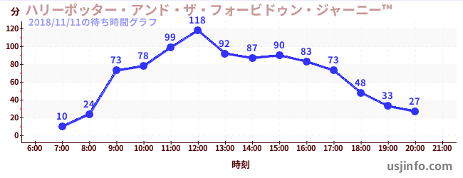 • ハリーポッター・アンド・ザ・フォービドゥン・ジャーニー™$B$N(B2018年11月11日の待ち時間