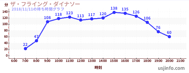 • ザ・フライング・ダイナソー$B$N(B2018年11月11日の待ち時間