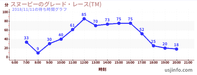 • スヌーピーのグレード・レース(TM)$B$N(B2018年11月11日の待ち時間